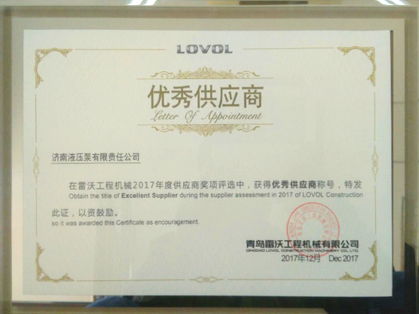 Liugong "Excellent Supplier in 2018"